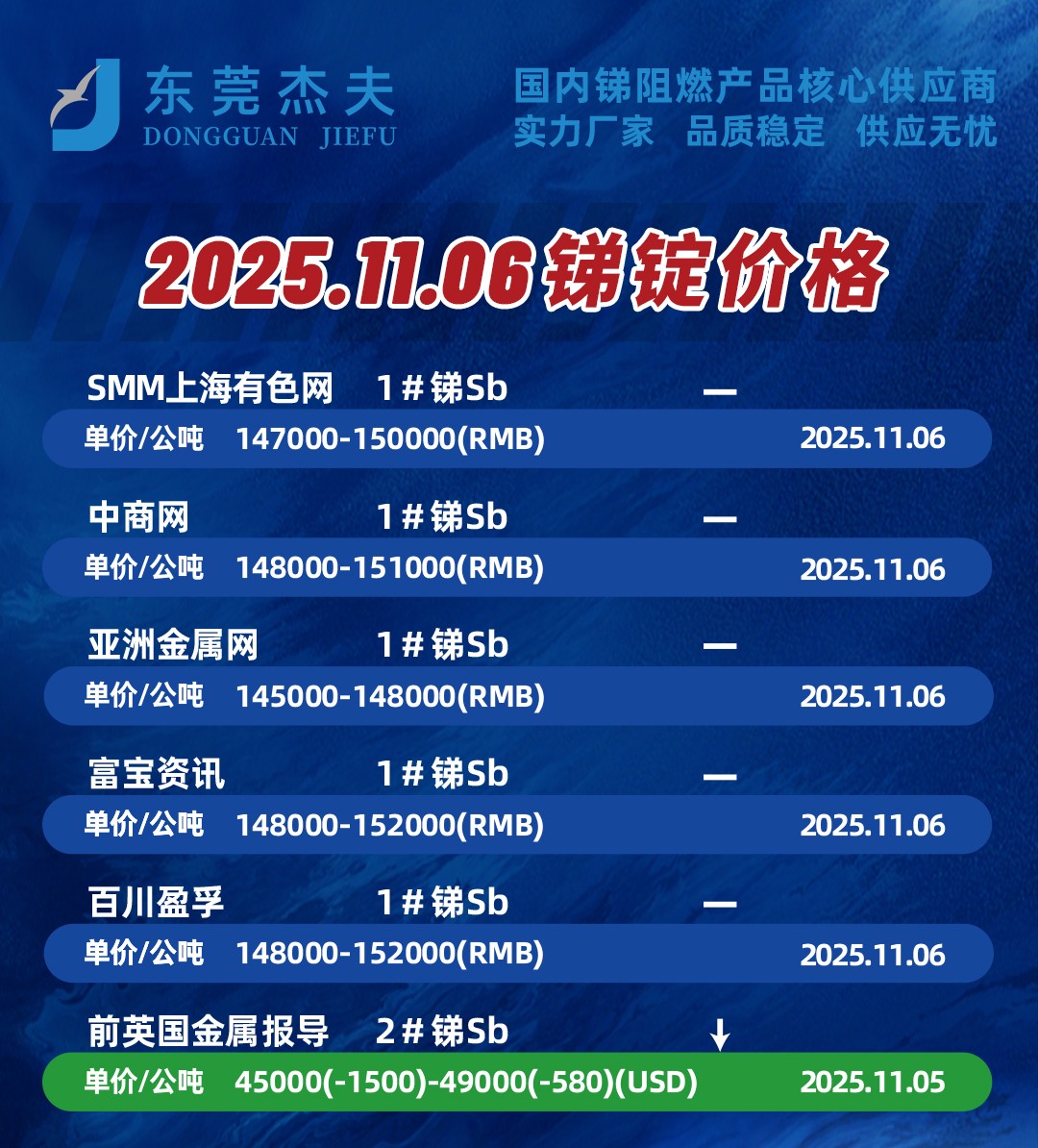 日訊 | 國內外銻錠行情2025.11.06